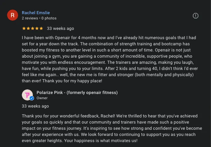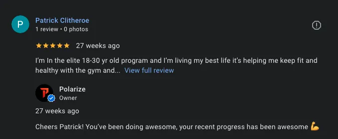 I've been going to POLARIZE classes for a couple months, I have already seen amazing progress in such a short amount of time All the other boys made me feel so welcome and I have definitely made some good friends We all have a laugh whilst still working hard and everyone is so supportive Thankyou Team